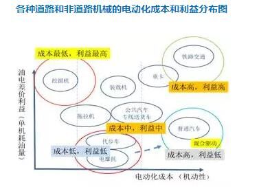 從圖上我們也發(fā)現(xiàn)一個過去沒有重視的地方,就是挖掘機。它其實應該是電動經(jīng)濟效益最大,而成本最低的機械!