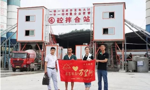 回訪團(tuán)到達(dá)2HZS60水泥混凝土攪拌站工地,查看了設(shè)備運(yùn)行情況,與攪拌站站長深入交流,攪拌站站長告知設(shè)備運(yùn)行良好,出料很給力,在整個(gè)工程工期中得到保證。