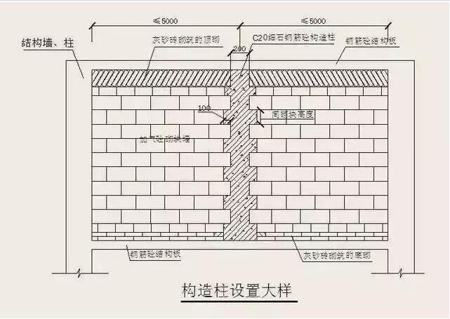 寬度大于2m的洞口的兩側(cè)、長度超過2.5m的獨(dú)立墻體的端部;砌塊墻體的長度超過5m時(shí),應(yīng)設(shè)鋼筋混凝土構(gòu)造柱。