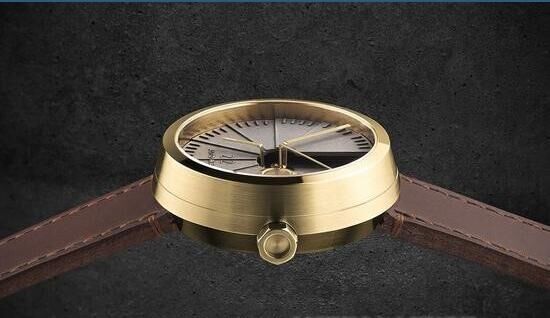 腕表的表殼由兩種材質(zhì)制成,一種是光滑的黃銅,一種是耐用不銹鋼;在3點(diǎn)鐘位置配備獨(dú)一無(wú)二的日期窗。