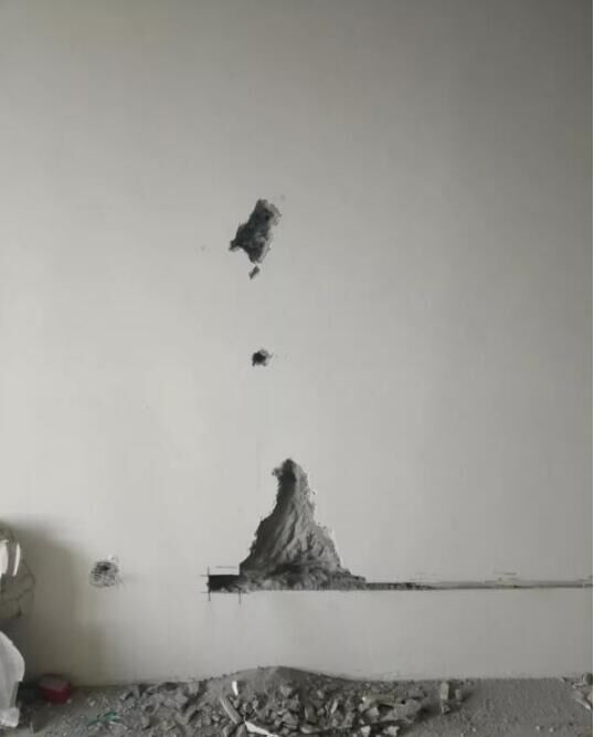 10月29日,記者再次來到萬科·招商諾丁山小區(qū),發(fā)現(xiàn)石女士家與隔壁鄰居家相鄰的客廳墻壁有明顯鑿挖痕跡,墻體距離客廳窗戶約3.5米處為承重墻,刺手或用工具都可從墻面上摳挖下來混凝土渣塊。24厘米厚的承重墻,裝修工人在11厘米處才挖到墻體內的鋼筋,從地面到1.5米高度都是此種情況?!?0月25日,裝修工人發(fā)現(xiàn)承重墻疏松掉渣,且墻里鋼筋稀少,擔心出問題就停工了。我再次找到開發(fā)商和中建三局要求退房和裝修賠償,可是一拖再拖,始終沒有給解決?!笔繗鈶嵉卣f,她家在二樓,現(xiàn)在發(fā)現(xiàn)她家的承重墻和棚頂出現(xiàn)質量問題,她很擔心樓體的安全。