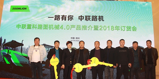 2017年12月2日,中聯(lián)重科在河南省黃河迎賓館舉行了主題為“一路有你 中聯(lián)路機(jī)”的路面機(jī)械4.0產(chǎn)品推介會(huì)暨2018年訂貨會(huì)。推介會(huì)上,中聯(lián)重科路面機(jī)械公司副總經(jīng)理周元珍、中聯(lián)重科路面機(jī)械公司營(yíng)銷公司總經(jīng)理張曉東、中聯(lián)重科路面機(jī)械產(chǎn)品研究所所長(zhǎng)龔敬等公司領(lǐng)導(dǎo)與中國(guó)建筑第七工程局集團(tuán)有限公司商務(wù)總經(jīng)理魏新保、設(shè)備管理部經(jīng)理?xiàng)罡邆?、鄭州市公路局路通公司副總?jīng)理馬國(guó)強(qiáng)、鄭州市瀝青站協(xié)會(huì)會(huì)長(zhǎng)朱金安、河南連通路橋有限公司副總經(jīng)理袁偉、等當(dāng)?shù)匦袠I(yè)資深人士,同河南省內(nèi)近兩百位客戶,共商路面機(jī)械產(chǎn)品升級(jí)及項(xiàng)目施工助建方案。