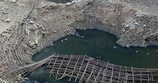 這么深的坑,又是懸崖峭壁,工人們花在從平地到坑底的時間實在太多了,根本沒法兒正常施工。之后,他們便試探著修了棧道,但這么險的崖壁,載重極其有限,效率也沒有提高多少。