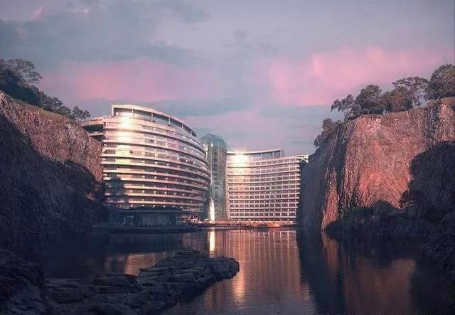 建成以后的深坑酒店簡直就是化腐朽為神奇。酒店70多米高,占地8000多平方米,共設(shè)有300余間客房,其中包括了水下情景套房等,此外還有與崖壁的自然資源融合定制的空中花園以及垂掛而下的壯觀瀑布。在娛樂方面也做得極好,還有蹦迪等項目。