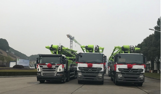 中聯(lián)重科4.0混凝土泵車(chē)在長(zhǎng)沙麓谷工業(yè)園整裝待發(fā)