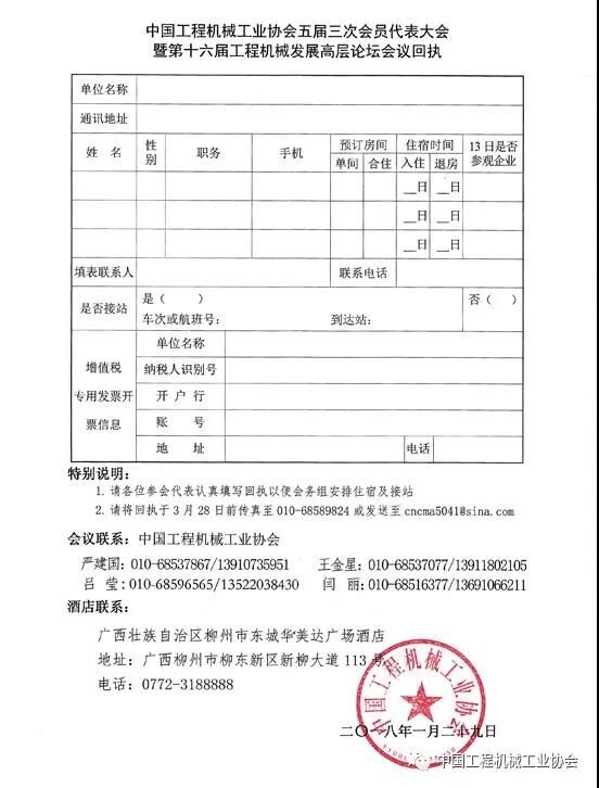 中國工程機(jī)械工業(yè)協(xié)會(huì)茲定于2018年4月11~14日在廣西柳州市召開“中國工程機(jī)械工業(yè)協(xié)會(huì)五屆三次會(huì)員代表大會(huì)暨第十六屆工程機(jī)械發(fā)展高層論壇”。會(huì)員代表大會(huì)的主題是“新時(shí)代、新理念、新作為”。
