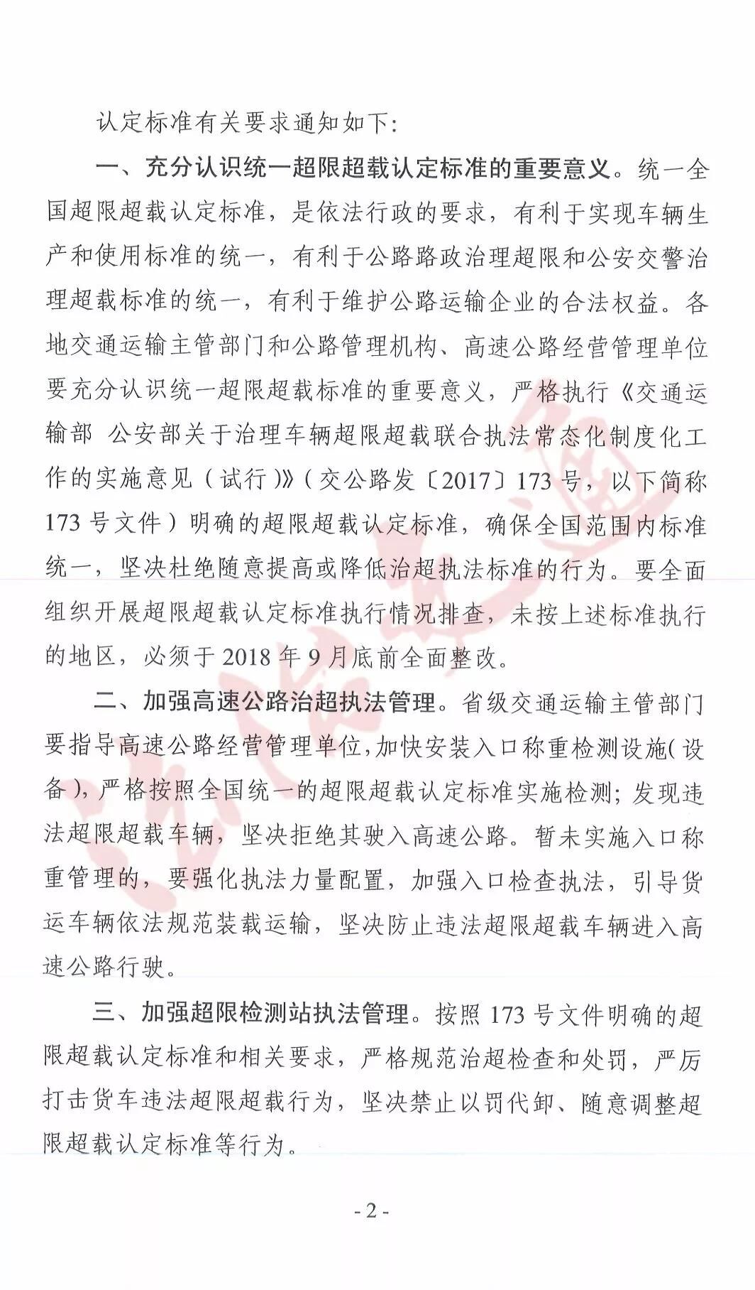 文件強(qiáng)調(diào):部分地區(qū)依然未嚴(yán)格執(zhí)行全國(guó)統(tǒng)一超限超載認(rèn)定標(biāo)準(zhǔn),部分高速公路對(duì)超限30%的車(chē)輛仍然按照基本費(fèi)率計(jì)重收費(fèi),導(dǎo)致高速公路與普通公路治超標(biāo)準(zhǔn)不一致,不同省份執(zhí)法力度不統(tǒng)一等問(wèn)題。未按標(biāo)準(zhǔn)執(zhí)行的地區(qū),9月底前全面整改。