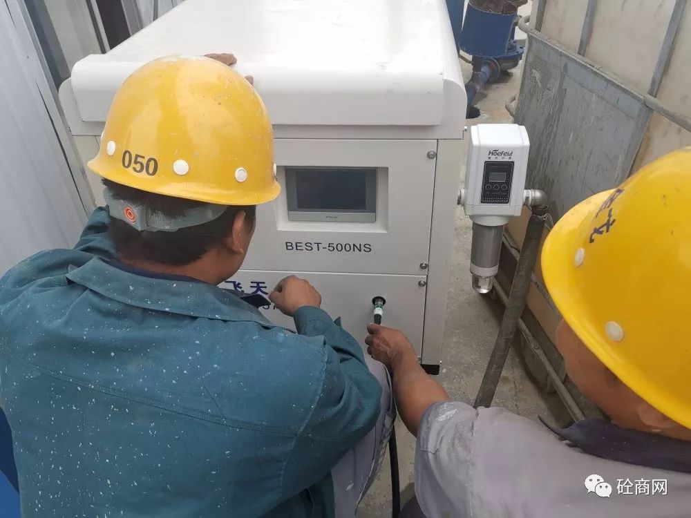 到了青島某攪拌站后,其攪拌站負責人攜站長親自到現(xiàn)場觀看試機效果。