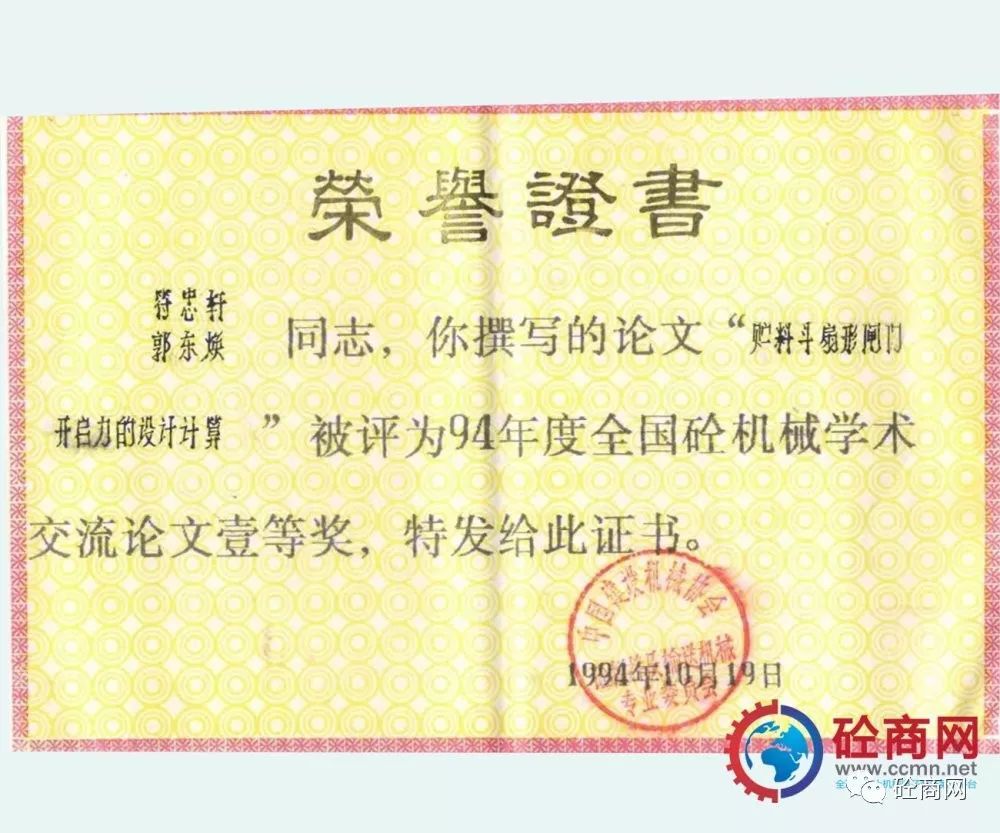 行業(yè)引領發(fā)展,研發(fā)人員積極性高。本人作為科研人員先后發(fā)表了《儲料斗扇形閘門開啟力的設計計算》被評為1994年度全國砼機械學術交流論文一等獎,本文引入“水力學半徑”的概念,較為詳盡的介紹了目前在混凝土攪拌站、配料站上大量采用的扇形閘門料斗的開啟力計算,為配料機構的設計選型提供了理論依據;發(fā)表的《談裝載機上料形式混凝土配料(攪拌站)的發(fā)展》被評為1992年度全國砼機械學術交流會優(yōu)秀論文獎,本文針對當時混凝土攪拌站上料型式較多:懸臂拉鏟、鏈斗機及裝載機上料型式等,分析了國內發(fā)展的實際,提出了裝載機上料形式為未來發(fā)展方向;1997年發(fā)表在《建設機械技術與管理》雜志第五期的《混凝土泵攪拌葉片的合理布置》,以全球量大面廣的S閥為例,分析了幾種葉片布局形式對混凝土泵吸料性的影響,設計了一種正泵送料、反泵扒料合理的攪拌葉片布局形式。