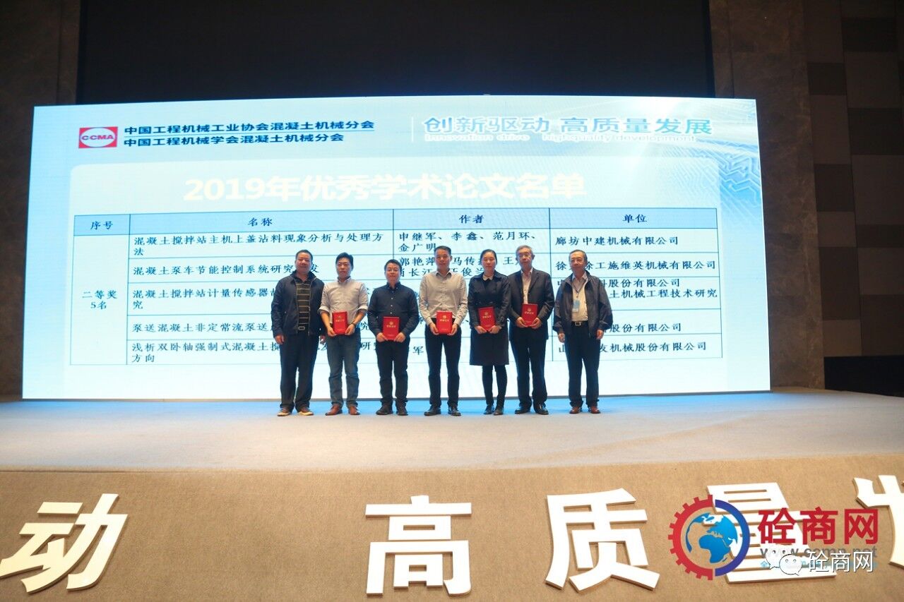 2019年的論文征集評選結果已經揭曉,共收到參評論文26篇,其中會長單位中聯(lián)重科、國家混凝土機械技術研究中心《基于離散單元法立軸沖擊破碎機成砂率研究》等三篇論文獲得一等獎,副會長單位廊坊中建機械有限公司《混凝土攪拌站主機上蓋沾料現(xiàn)象分析與處理方法》共5篇論文獲得二等獎、中聯(lián)重科、國家混凝土機械技術研究中心《基于云邊一體的泵車油耗分析研究》等8篇論文獲得三等獎,其余10篇均獲優(yōu)秀論文獎。在此我提議:讓我們以熱烈掌聲向中聯(lián)重科、徐工施維英、廊坊中建機械有限公司三家優(yōu)秀組織單位和論文獲獎人員表示最熱烈的祝賀和最誠摯的感謝——感謝大家為中國混凝土機械行業(yè)的技術進步所做出的貢獻。