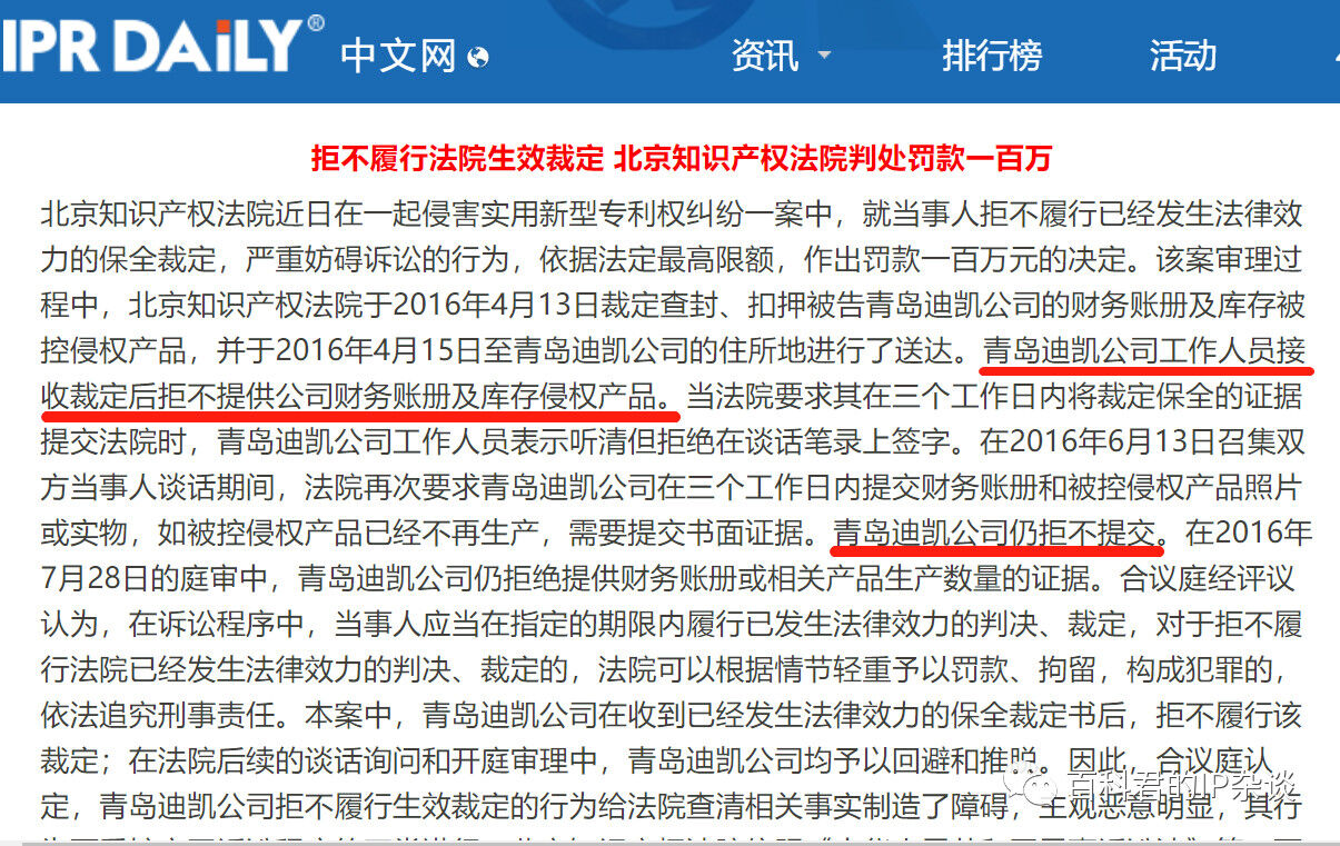 具體點(diǎn)就是,迪凱公司無正當(dāng)理由,拒絕按照保全裁定提供相關(guān)證據(jù)(甚至還曾被判處罰款100萬),應(yīng)當(dāng)承擔(dān)相應(yīng)的不利后果,從而推定上述主張成立。