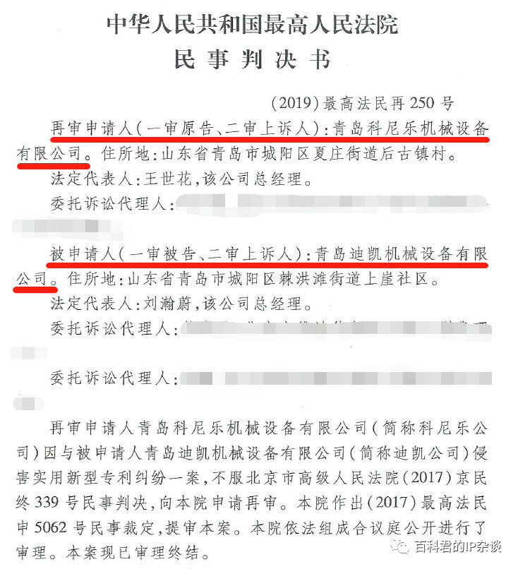 青島科尼樂機(jī)械設(shè)備有限公司訴青島迪凱機(jī)械設(shè)備有限公司侵害實(shí)用新型專利權(quán)糾紛案。
