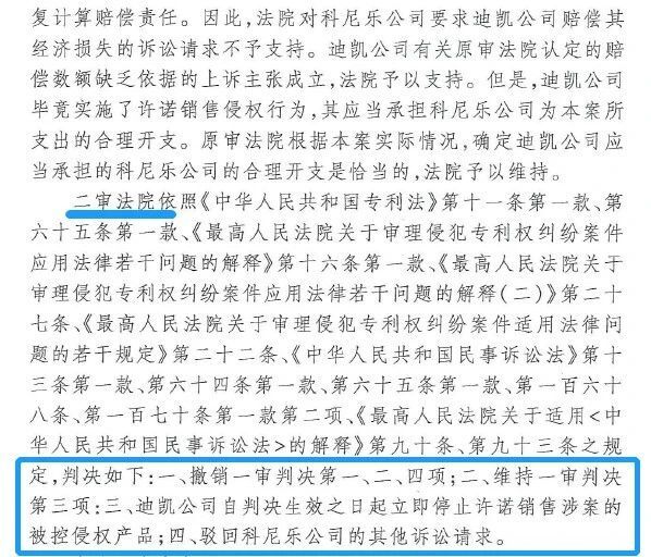 高院認(rèn)為,迪凱公司“從事了被訴侵權(quán)產(chǎn)品的制造、銷售和許諾銷售行為”。