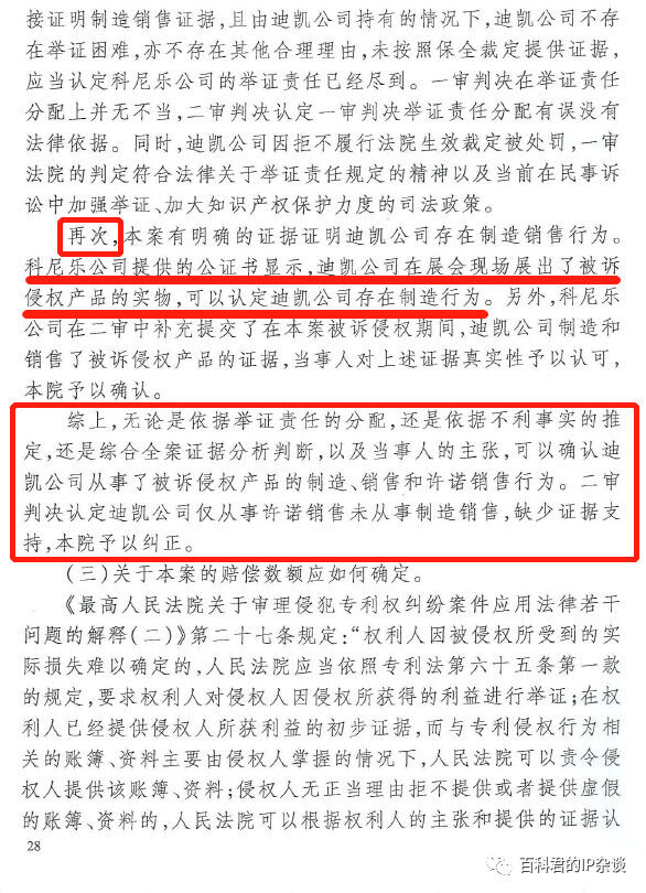 關(guān)鍵在于,最高院是“從舉證責(zé)任和舉證妨礙的角度可以推定凱迪公司存在制造銷售行為”。