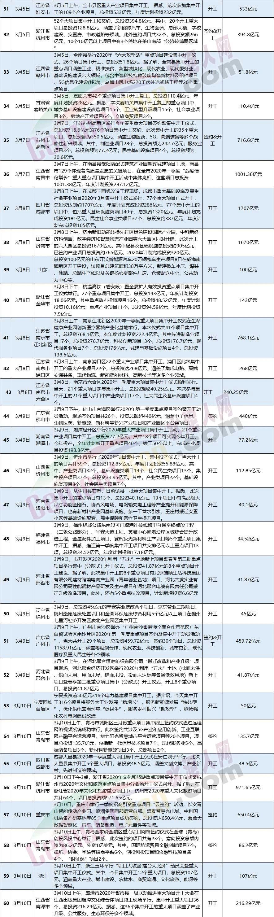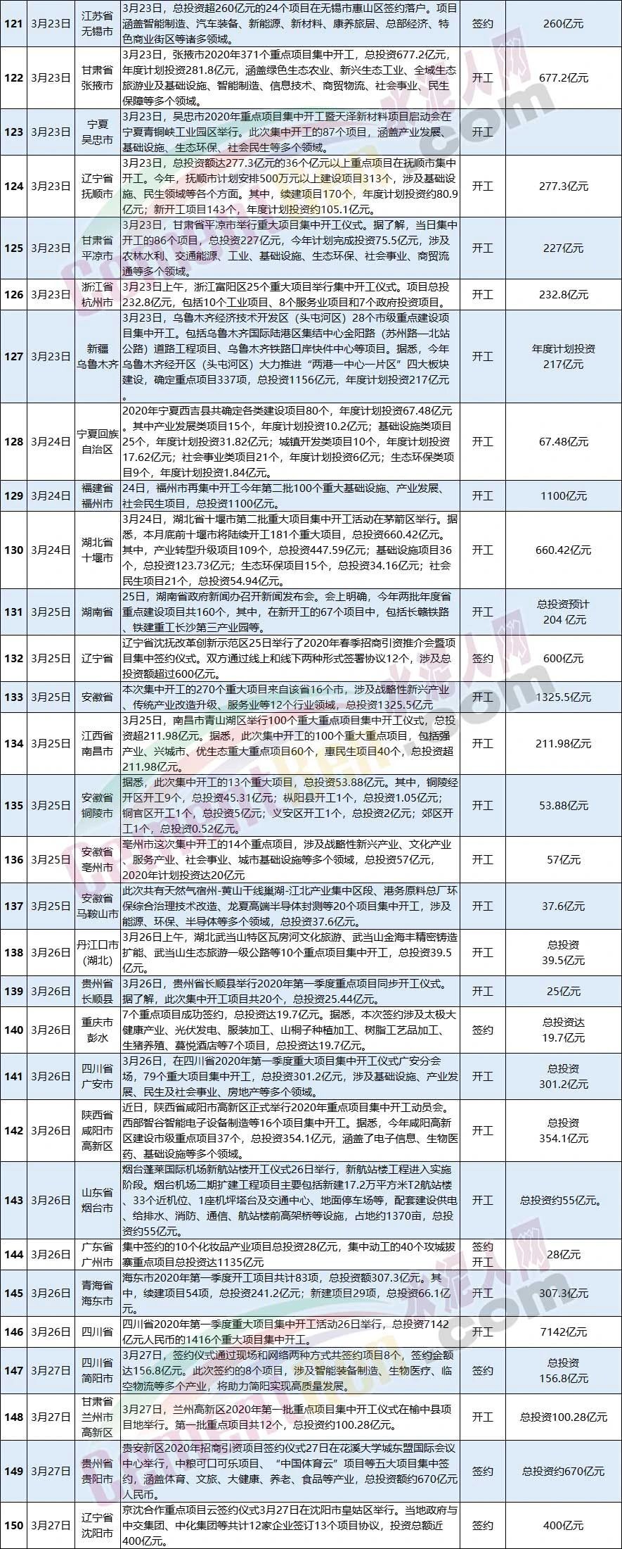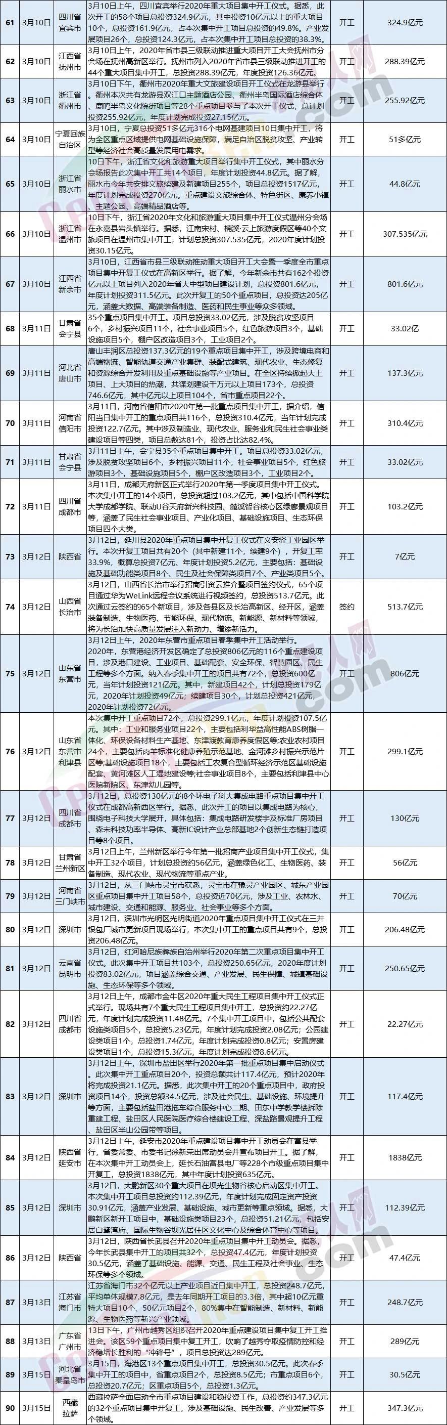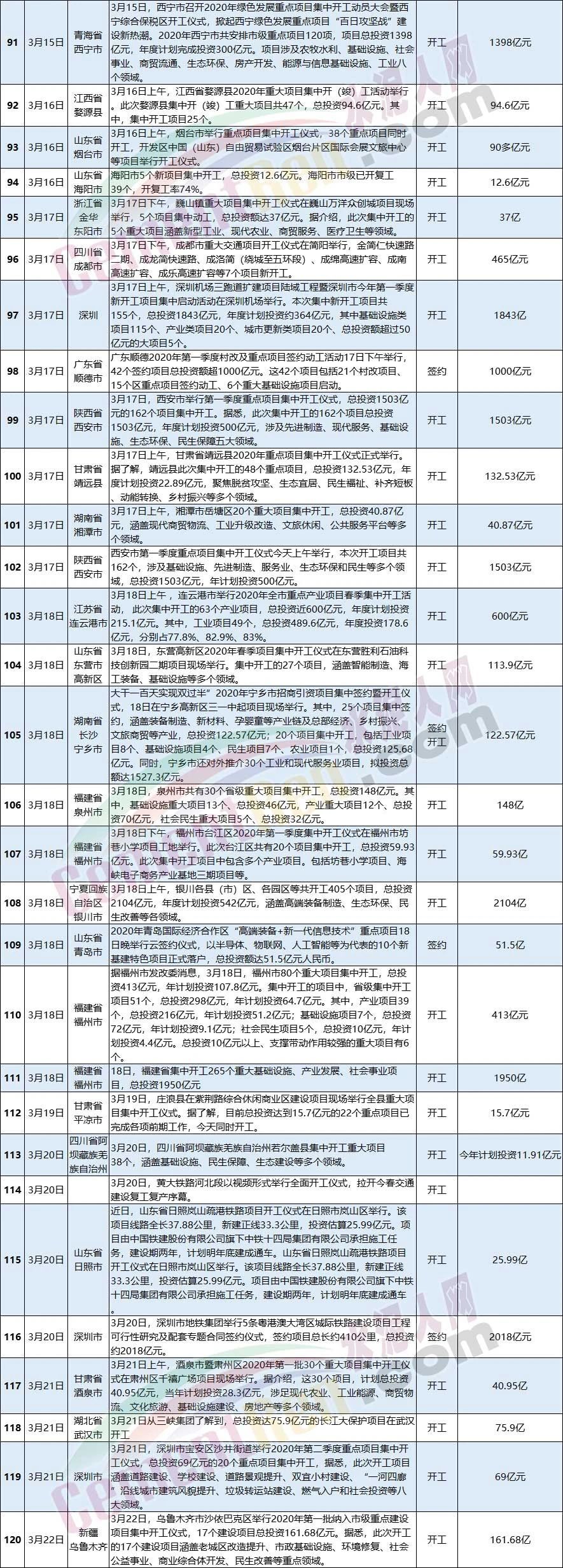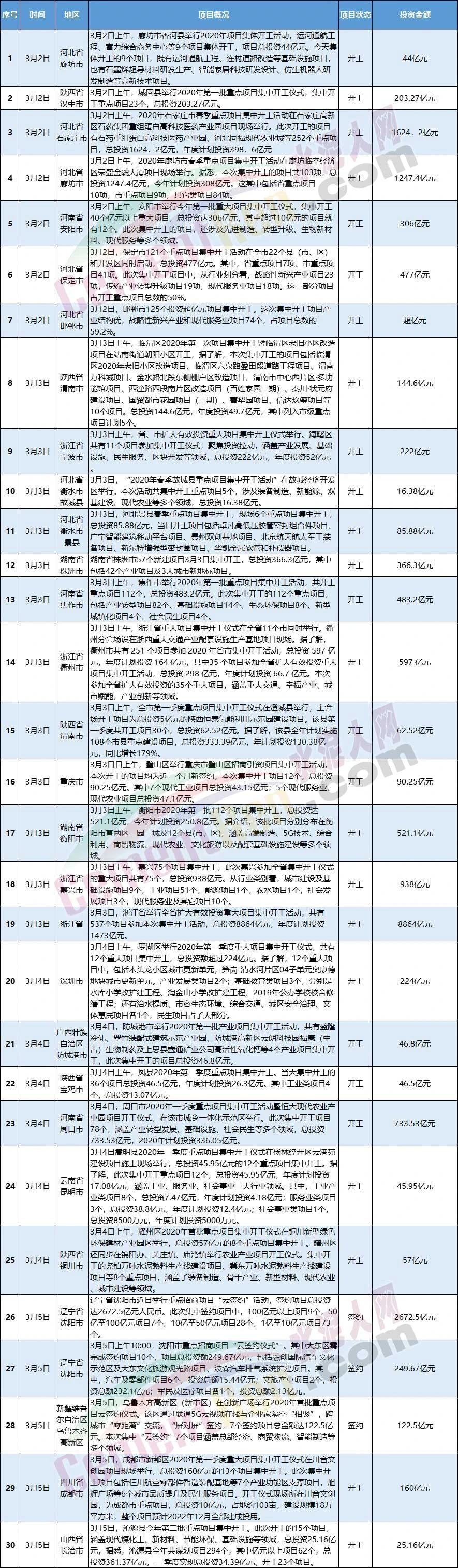 3月全國(guó)新開工和簽約項(xiàng)目一覽表