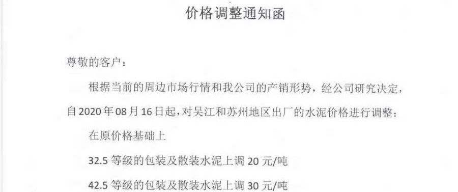據(jù)中國(guó)水泥網(wǎng)消息,8月16日,長(zhǎng)三角區(qū)域蘇州、無(wú)錫、常州等地水泥上漲20-30元/噸。