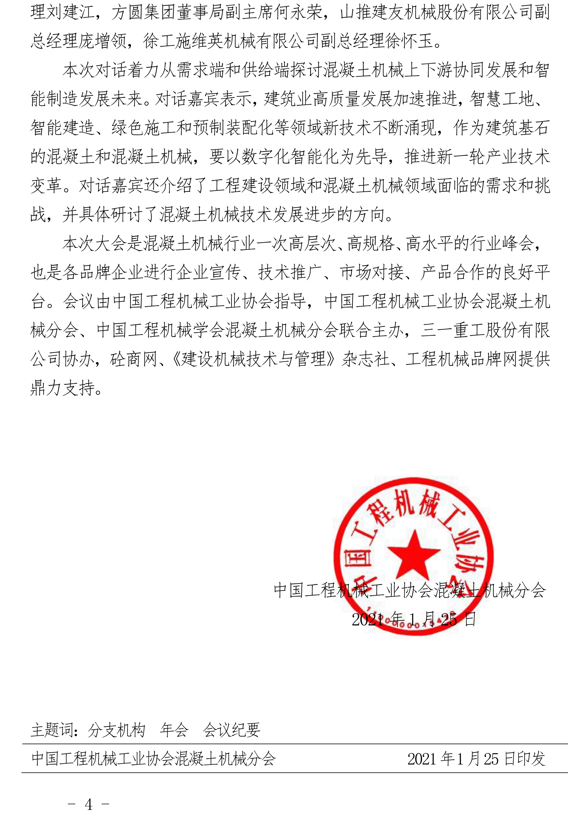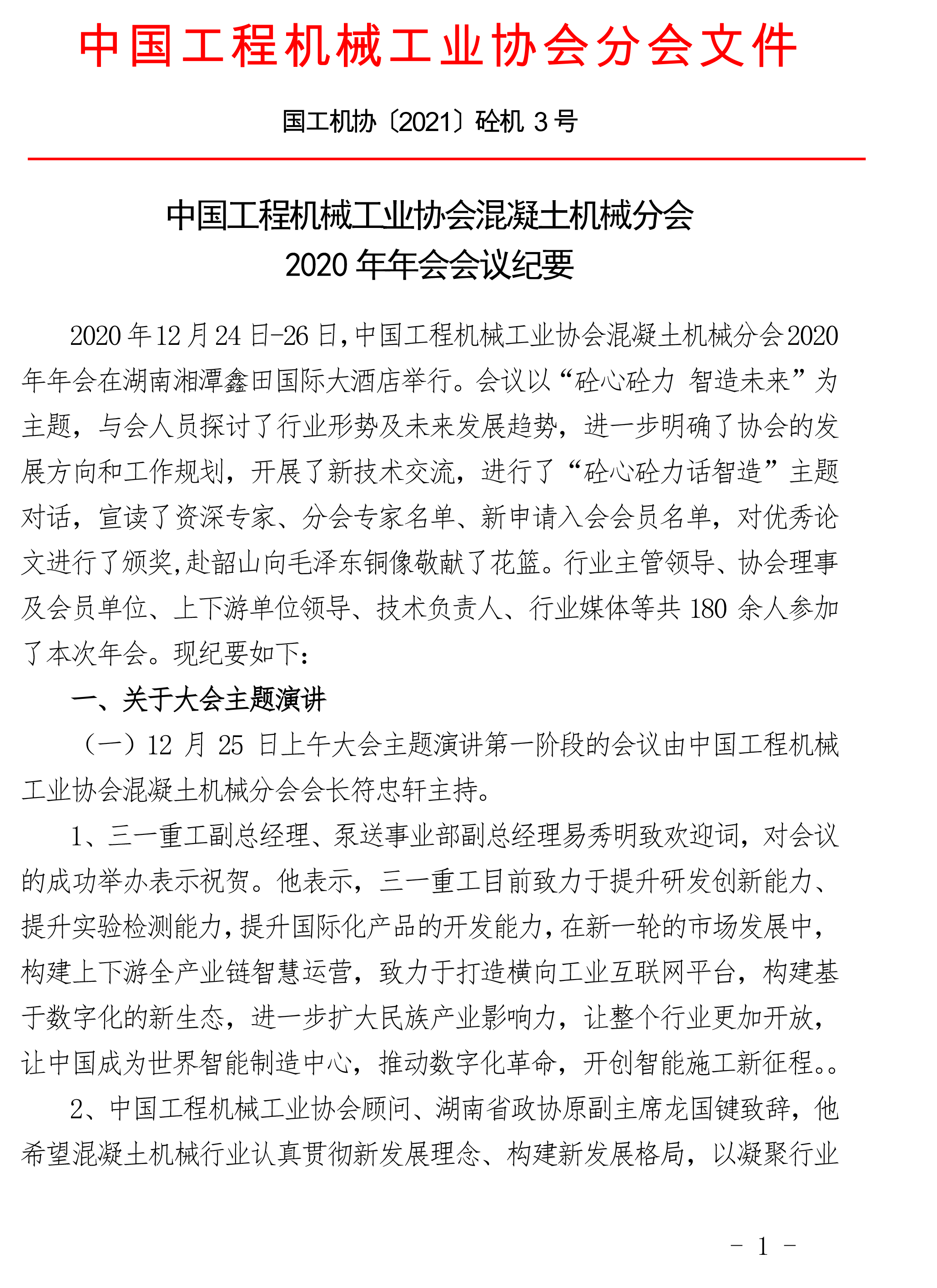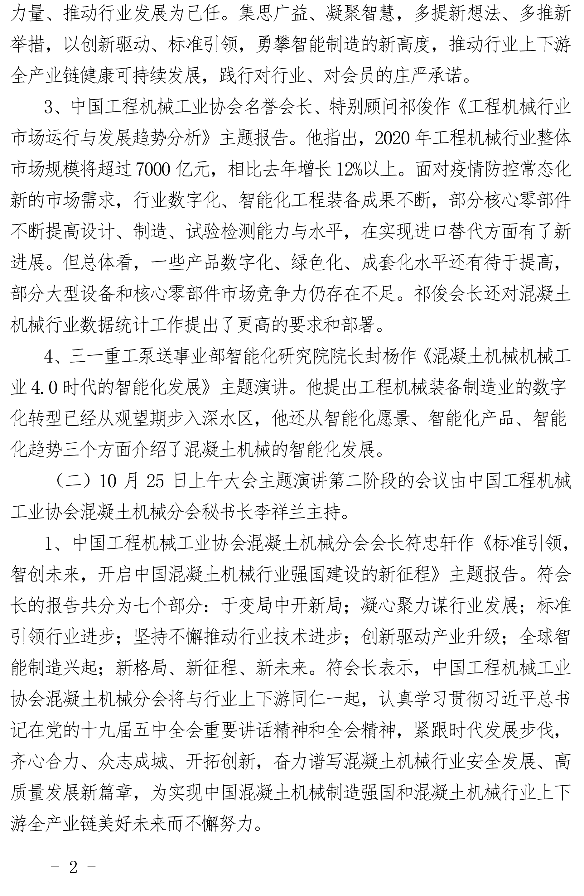 中國工程機械工業(yè)協(xié)會混凝土機械分會 2020年年會會議紀(jì)要