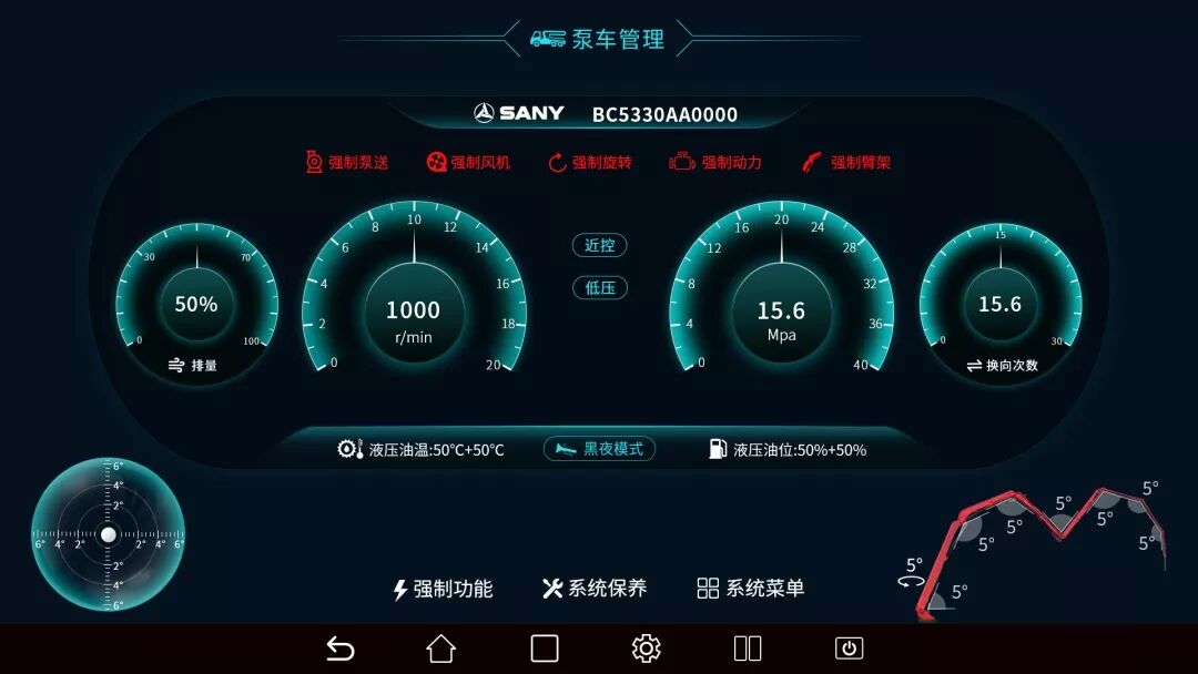 除了柔和模式省油之外,S系列泵車在爬坡時(shí)也更有勁,而且油耗并沒有增加。