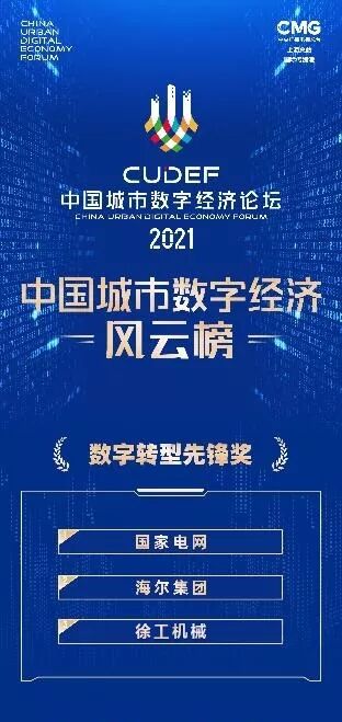 論壇上,《中國城市數(shù)字經(jīng)濟風(fēng)云榜》榮耀發(fā)布。榜單包括“城市數(shù)字經(jīng)濟競爭力綜合排名”,同時多項重磅獎項發(fā)布,“數(shù)字賦能先鋒獎”“數(shù)字轉(zhuǎn)型先鋒獎”“數(shù)字應(yīng)用方案獎”。徐工機械與國家電網(wǎng)、海爾集團(tuán)同時榮獲“數(shù)字轉(zhuǎn)型先鋒獎”,成為唯一入選的工程機械制造企業(yè)。