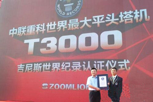 在交付儀式現(xiàn)場,英國吉尼斯世界紀(jì)錄認(rèn)證官陳東先生鄭重宣布,T3000是全球最大的平頭塔機(jī),由中國的中聯(lián)重科制造,再次創(chuàng)造了全球起重機(jī)械的又一個“世界之最”?!霸擁椨涗浀恼Q生標(biāo)志著中聯(lián)重科塔機(jī)技術(shù)站在了世界塔機(jī)設(shè)計和制造領(lǐng)域的最前沿,充分彰顯了中聯(lián)重科在全球起重機(jī)行業(yè)的領(lǐng)先地位和主導(dǎo)作用”,國家建筑城建機(jī)械質(zhì)量監(jiān)督檢驗中心主任曾舜安表示。