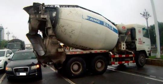 由于連日來的大雨,23日下午13時(shí)50分許,福建晉江市晉光路燈控路口,一輛攪拌車剎車打滑,車頭沖上綠化帶撞了電子警察監(jiān)控桿,之后車身打橫,車尾擦撞了一旁停車等紅燈的奧迪小車,兩人當(dāng)街發(fā)生爭執(zhí)。