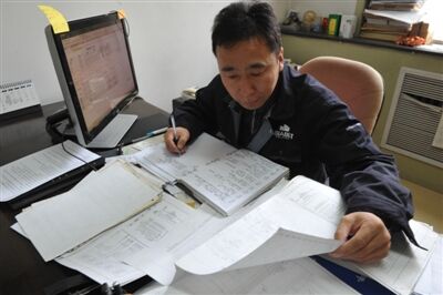 近日,記者來到位于西四環(huán)的混凝土攪拌站,走進(jìn)維修車間,石新雨和他的徒弟正在車床前忙碌著。見到記者進(jìn)來,石新雨的徒弟說,“是采訪‘牛哥’來的吧!他可是我們這兒的大能人?!笔掠臧咽掷锏幕罡赏辏钢饷鎭硗乃喙嘬嚭顽P車對記者說,“這些車輛和攪拌站設(shè)備都是我們維修保養(yǎng),為了保障設(shè)備運行生產(chǎn),我們必須掌握一些技術(shù)?!彼弥掷飫偧庸ず玫囊粋€零件說,“這是水泥罐車上的一個易損件,經(jīng)過我們加工改造,可以節(jié)約50%成本?!弊哌M(jìn)維修車間旁邊他的辦公室,隨處可見許多技術(shù)專業(yè)書籍,涉及到機械、液壓液力、電子控制、軟件應(yīng)用等方面的內(nèi)容。石新雨說,“這些書是我的‘專業(yè)技術(shù)老師’”。