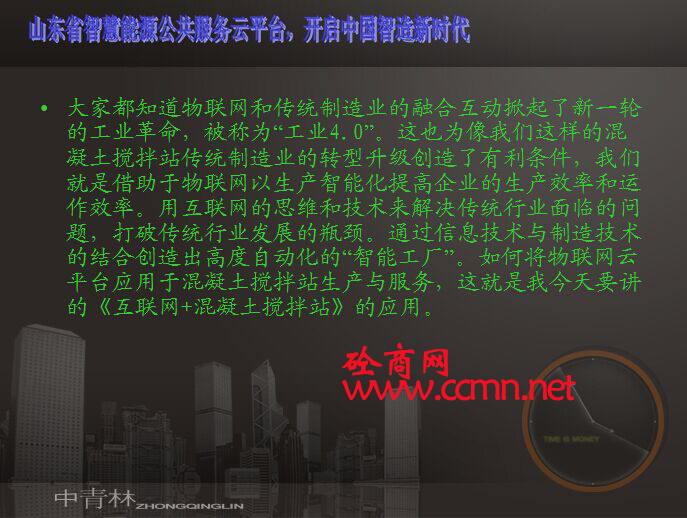 新型建機(jī)徐君飛參加山東智慧能源公共服務(wù)平臺(tái)開(kāi)通儀式,就物聯(lián)網(wǎng)對(duì)攪拌站的應(yīng)用進(jìn)行闡述。