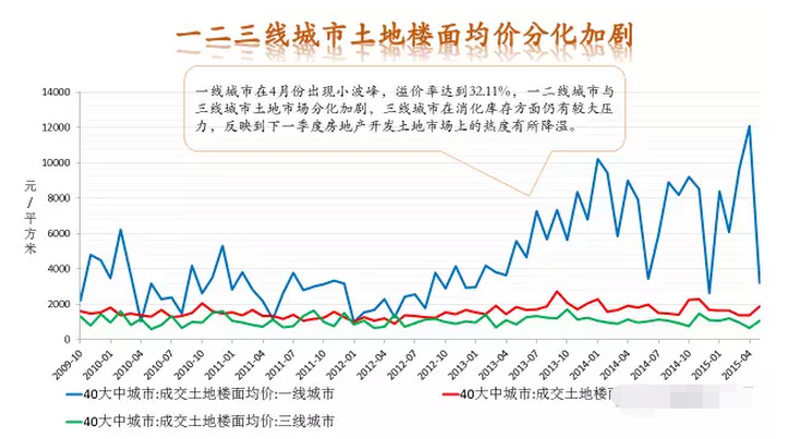 從不同級(jí)別的城市看,一線城市環(huán)比3月上漲幅度達(dá)到14.1%,漲幅最大,二線城市漲幅也達(dá)到7.3%。而三四線城市則并不樂(lè)觀,整體市場(chǎng)走勢(shì)出現(xiàn)了明顯的分化趨勢(shì)。