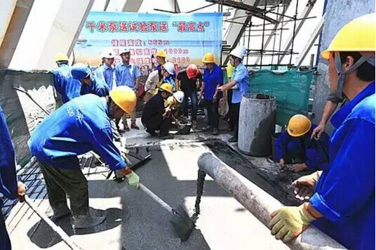 C100混凝土指的是混凝土抗壓強度為100MPa的混凝土,即1平方米C100混凝土上能承受一萬噸的重量。當前,國內C100混凝土研發(fā)與使用高度尚在探索中,將C100混凝土泵送到1000米完全是建筑行業(yè)最前沿的探索。