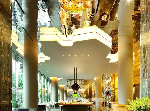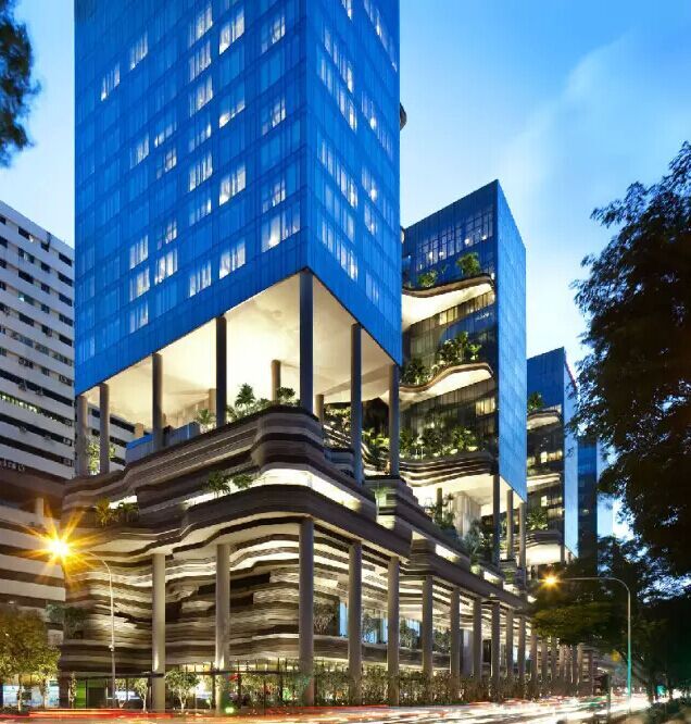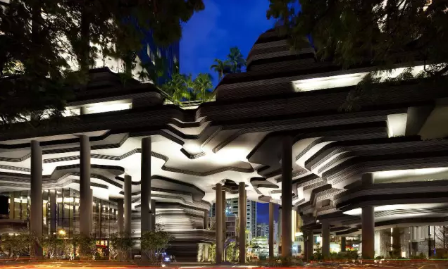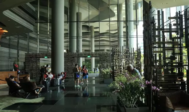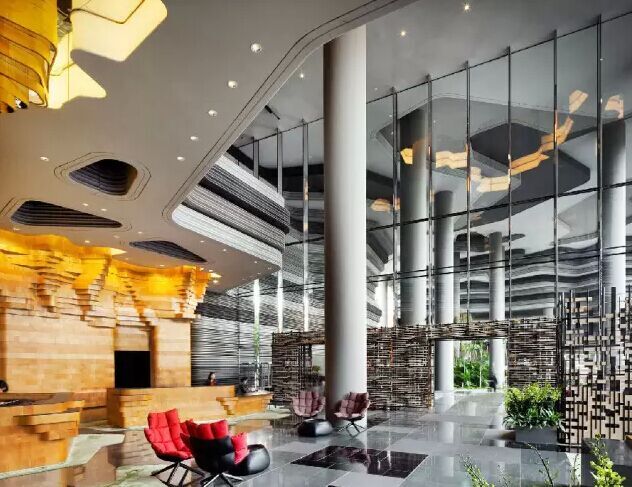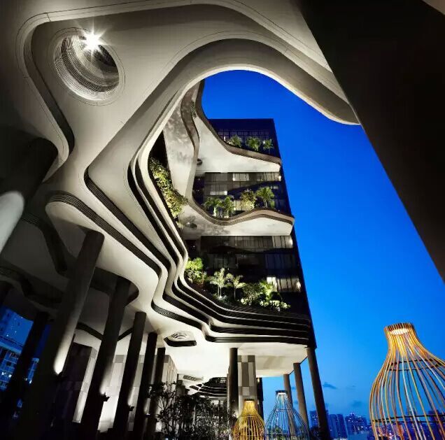 建筑流動(dòng)的幾何體給人一種高聳入云之感,塔樓每隔三層客房擁有懸挑的空中花園,上面種滿(mǎn)了熱帶植物,它已成為城市綠地的一部分,與鄰近公園融為一體。酒店擁有自我遮陽(yáng)功能,懸挑而出的空中花園和相鄰的三座酒店客房大樓都能起到遮陽(yáng)的作用,客房樓層立面采用低輻射玻璃。酒店頂樓的屋頂花園可將全城風(fēng)光一覽無(wú)余,獨(dú)家蘭花貴賓會(huì)所位處該層,并配有私人會(huì)議空間、圖書(shū)館和專(zhuān)用的貴賓會(huì)所門(mén)房。酒店五層設(shè)有可俯瞰城市的無(wú)邊界泳池,設(shè)備先進(jìn)的健身中心,特色的鳥(niǎo)籠休息涼亭及長(zhǎng)達(dá)300米花園走道。