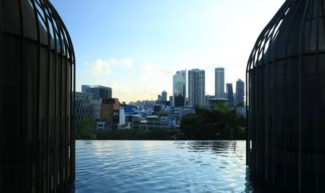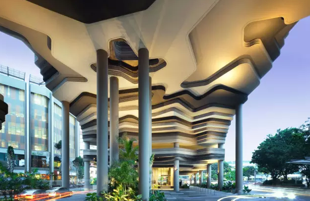 酒店位于其中心商業(yè)區(qū),是新加坡WOHA建筑事務(wù)所的杰作,負(fù)責(zé)景觀設(shè)計(jì)的為T(mén)ierra事務(wù)所。皮克林賓樂(lè)雅采用花園酒店理念,貫徹節(jié)能,已獲新加坡綠色建築最高榮譽(yù)BCA綠色建築白金獎(jiǎng),因其為首間使用太陽(yáng)能酒店,獲得太陽(yáng)能先鋒獎(jiǎng)。酒店樓高16層,12層高的塔樓坐落在5層高裙樓樓頂上,塔樓每隔三層懸挑一座空中花園。裙樓被波狀預(yù)制混凝土包圍,WOHA稱(chēng)之為地形建筑、會(huì)呼吸的建筑。