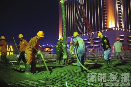 8月15日晚8時(shí),長(zhǎng)沙萬(wàn)家麗廣場(chǎng)對(duì)面,一輛水泥罐車開進(jìn)萬(wàn)家麗路與荷花路交會(huì)處東南角。接著這輛罐車伸出高高的手臂,連續(xù)不斷地向萬(wàn)家麗路高架輸送預(yù)拌混凝土,數(shù)十名工程技術(shù)人員在綁扎好鋼筋的最后一跨箱梁上嫻熟操作。上海城建市政集團(tuán)萬(wàn)家麗路快速化改造工程項(xiàng)目副總指揮、項(xiàng)目經(jīng)理傅建平透露,15日晚8時(shí)至16日上午10時(shí),十名工程技術(shù)人員要完成120米橋面混凝土澆筑,到16日上午10時(shí),萬(wàn)家麗路快速化高架主線結(jié)構(gòu)全面貫通。今年國(guó)慶節(jié),作為湖南長(zhǎng)沙乃至湖南首條按照快速化改造的高架橋,將實(shí)現(xiàn)全面竣工通車。