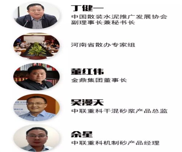 此次方案的參與實(shí)施者對有中國散裝水泥推廣發(fā)展協(xié)會副理事長兼秘書長丁健一;河南省散辦專家組;金鼎集團(tuán)董事長董紅偉;中聯(lián)重科干混砂漿產(chǎn)品總監(jiān)吳漫天;中聯(lián)重科機(jī)制砂產(chǎn)品經(jīng)理余星