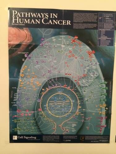 這是我老婆貼在家里的一張海報(bào),里面的每一個(gè)箭頭、每一根線都是好幾篇或者好幾十篇論文,很多都是 CNS,甚至有一些是諾貝爾獎(jiǎng)得主的成果。這是一個(gè)很直觀的科學(xué)的圖形化表述,一門科學(xué)就是由這些千千萬(wàn)萬(wàn)的點(diǎn)點(diǎn)滴滴組成的。