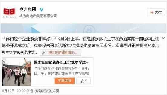 不過,從卓達(dá)的報道來看,卓達(dá)主要是用推廣自己3D模塊建房技術(shù)的噱頭吸引官方前來參觀,給他們“站臺”,卓達(dá)并不敢在官員們面前宣傳自己私下在進(jìn)行的那些涉嫌“違法集資”的活動。