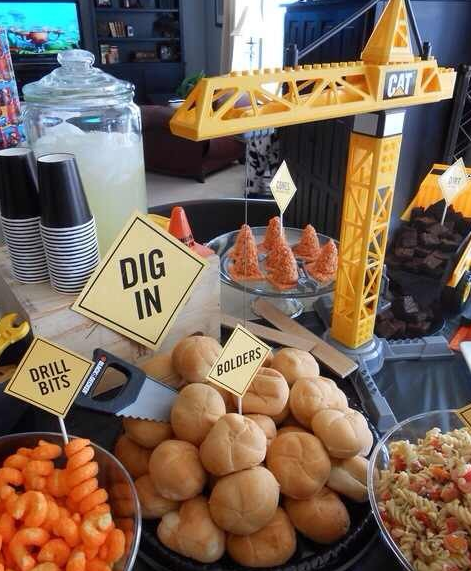 這里是主食區(qū),鑒于工程機械行業(yè)人人心靈手巧,請用此挖掘機DIY漢堡享用!各位,吃飽了也別忘了把這些土塊清清干凈那!