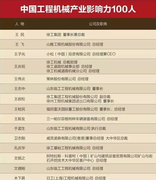 他們就是“中國工程機械產(chǎn)業(yè)影響力100人”。
