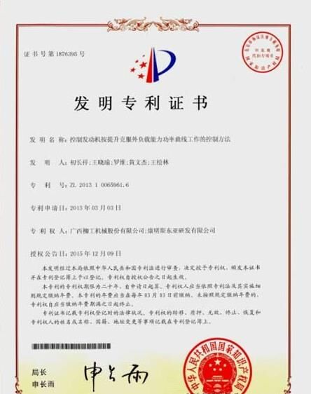 近日,柳工“控制發(fā)動(dòng)機(jī)按提升克服外負(fù)載能力功率曲線(xiàn)工作的控制方法”的發(fā)明專(zhuān)利獲得國(guó)家專(zhuān)利局授權(quán)。這是柳工進(jìn)入發(fā)動(dòng)機(jī)領(lǐng)域的第一項(xiàng)技術(shù)發(fā)明專(zhuān)利,同時(shí)也是與世界級(jí)企業(yè)康明斯合作的標(biāo)志性技術(shù)成果。