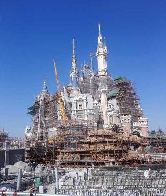 近日,筆者在上海迪士尼項(xiàng)目現(xiàn)場(chǎng)看到,項(xiàng)目的主體工程已經(jīng)呈現(xiàn)效果,迪士尼城堡等主體建筑呈現(xiàn)出童話般的色彩。圖中坐落于園區(qū)中央正在施工的就是白雪公主住的“奇幻童話城堡”,而它不僅是上海迪士尼樂(lè)園中的最高建筑,還是世界上最高、最大、最具互動(dòng)性的迪士尼城堡