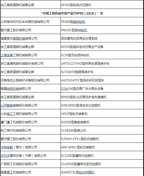 2016年3月31日,“2016工程機(jī)械產(chǎn)品發(fā)展(北京)論壇暨中國工程機(jī)械年度產(chǎn)品TOP50頒獎(jiǎng)典禮”在北京隆重舉行。來自中國工程機(jī)械工業(yè)協(xié)會(huì)及下屬分支機(jī)構(gòu)、國家工程機(jī)械質(zhì)量監(jiān)督檢驗(yàn)中心、相關(guān)行業(yè)協(xié)會(huì)以及工程機(jī)械制造企業(yè)、施工企業(yè)、科研機(jī)構(gòu)、高校、新聞媒體的200余位嘉賓參加了這次年度盛會(huì)。