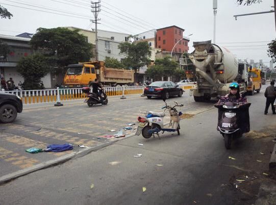事故的過程被附近一家商店的監(jiān)控探頭拍下。根據(jù)監(jiān)控錄像顯示,事發(fā)當(dāng)天上午11時許,混凝土車和電動車都是從福清市區(qū)開往海口鎮(zhèn)方向,當(dāng)電動車行駛至事發(fā)路段時,可能為了避讓前方一輛逆行的拉煤球的板車,騎電動車的女子便向左拐,突然間被后方快速行駛的混凝土車撞倒碾壓,女子當(dāng)場倒在血泊中。整個過程大約持續(xù)10秒鐘。