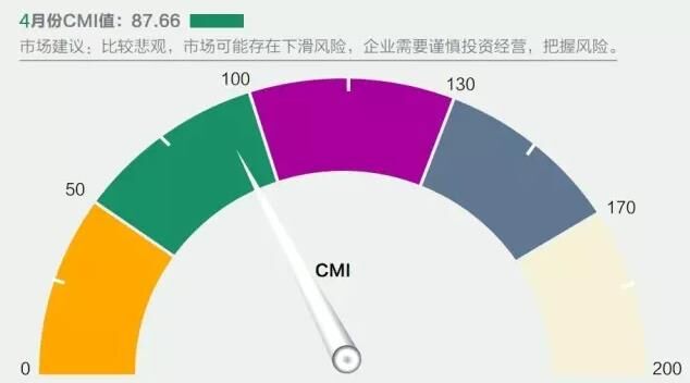 2016年4月份中國工程機械市場指數(shù)即CMI為87.66,同比增速-7.27%,環(huán)比增速-35.67%(依據(jù)CMI判斷標準,CMI在50~100之間,表示市場比較悲觀,可能存在下滑風險)。