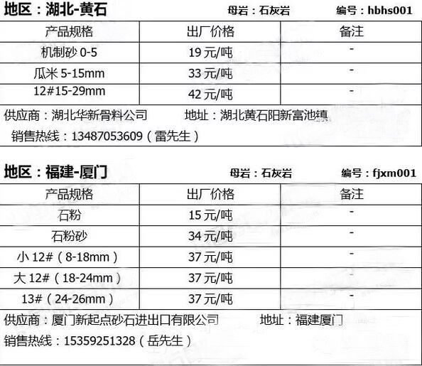 大宗砂石在線交易是“互聯(lián)網(wǎng)+砂石”生態(tài)圈重要一環(huán),今日小編給大家整理此份報價表旨在幫助廣大砂石需求商(攪拌站、工程建設單位、砂石貿(mào)易商等)以最快捷、最高效、最優(yōu)惠的方式來獲取優(yōu)質(zhì)的砂石產(chǎn)品,同時也為誠信優(yōu)秀的砂石企業(yè)打開一扇創(chuàng)新之窗,讓好的企業(yè)得到良性發(fā)展,讓好的砂石產(chǎn)品獲得市場機會,砼商網(wǎng)將定期為市場提供各種規(guī)格的砂石產(chǎn)品及報價信息,敬請關注!
