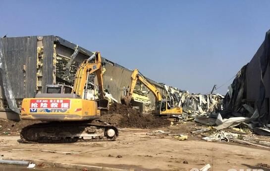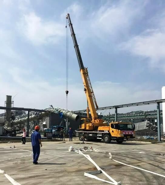 23日下午,由6名人員、4臺(tái)起重機(jī)、1臺(tái)挖掘機(jī)和兩輛服務(wù)車組成的救援小分隊(duì)趕到鹽城阜寧縣災(zāi)區(qū),緊急與當(dāng)?shù)鼐仍渚?、政府取得?lián)系,聽從統(tǒng)一指揮,全力投入現(xiàn)場(chǎng)搶險(xiǎn)。