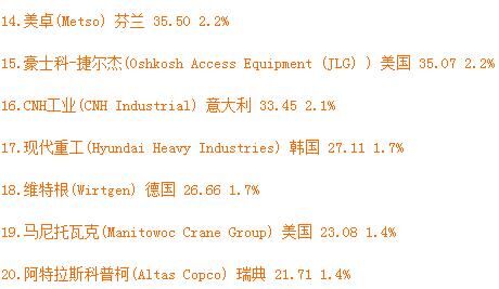 從表單中不難看出,卡特彼勒、小松的世界排名相對穩(wěn)定,仍然位居第一、第二名。其中卡特彼勒占總市場收入的18.1%。較之2015年,特雷克斯上升兩個名次,位居第三位。特雷克斯取代日立排名第三,日立建機(jī)排名第四,利勃海爾位列第五,沃爾沃排名第六。除此之外,斗山和杰西博分別上升兩個名次,擠進(jìn)前十名。