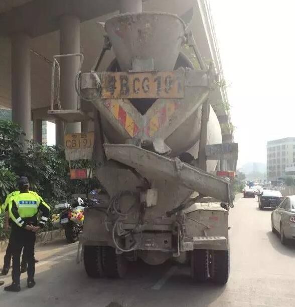 2016年9月26日8時(shí)45分許,深圳龍崗鐵騎六組在龍崗大道橫坪路口查處一輛號(hào)牌為粵BCG191的攪拌車,司機(jī)存在多個(gè)交通違法行為:放大號(hào)牌不清晰、未粘貼反光標(biāo)志、輪胎嚴(yán)重磨損,極其危險(xiǎn)!屬機(jī)件不全!