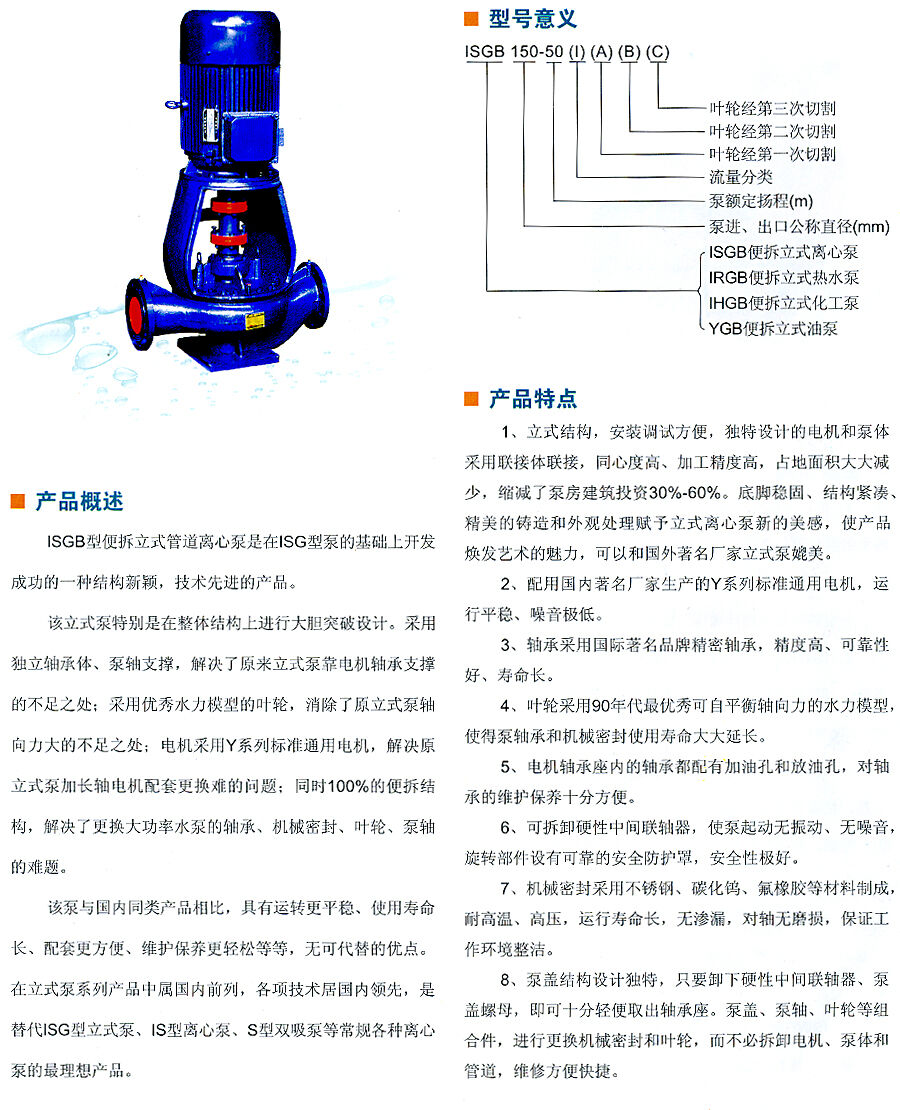 ISGB系列便拆立式管道離心泵