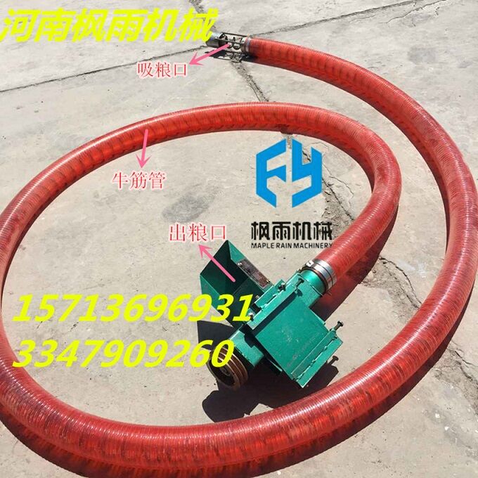 機器使用電源220V(兩相電可操作),機身長度6米【可定】,每小時抽糧6-8噸,機器重量75公斤左右,:吸糧軟管的直徑(100mm),材質(牛筋管),適合下鄉(xiāng)抽糧使用,能使您減輕人工負擔。