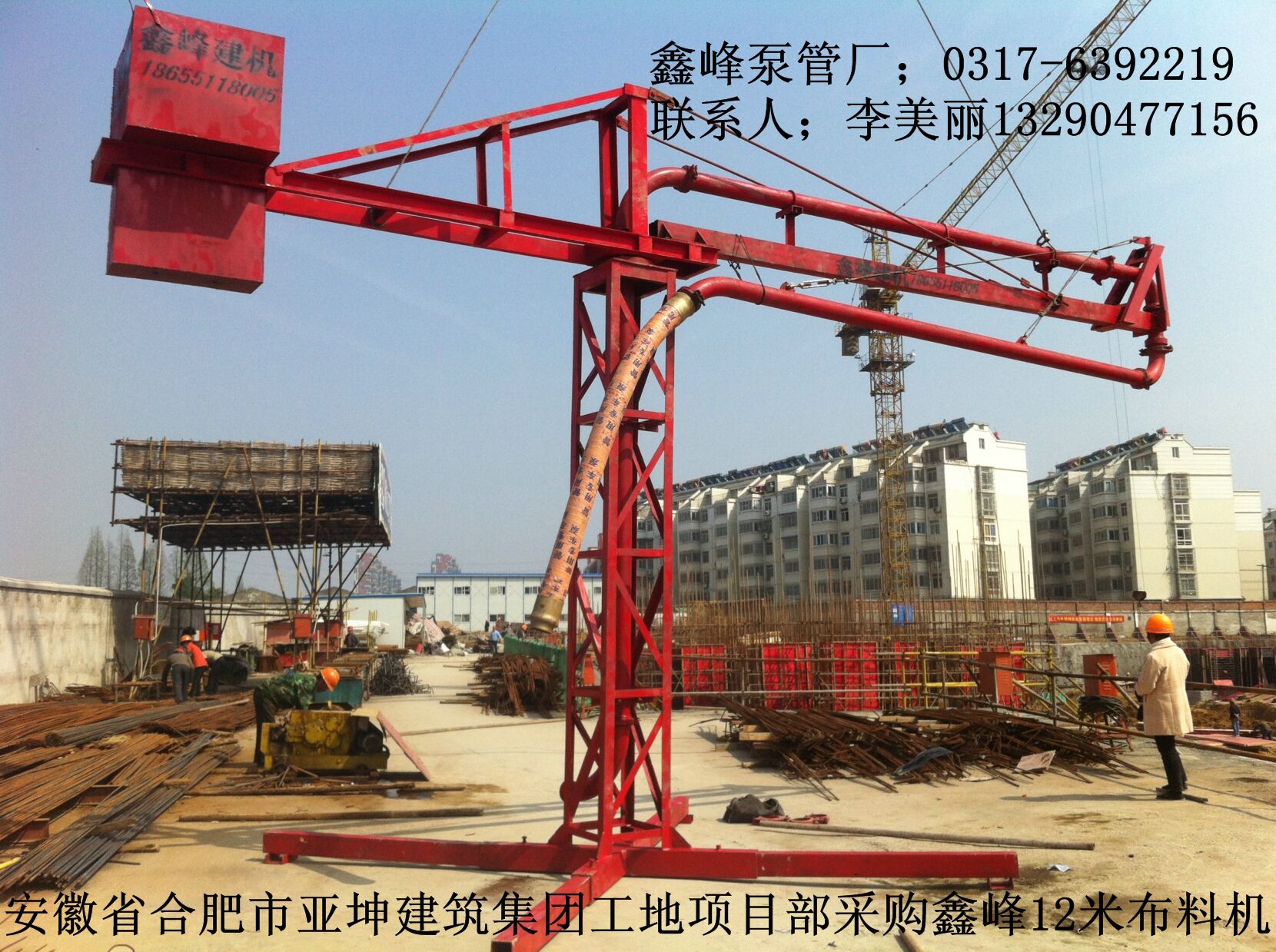 *12米.15米.18米手動(dòng)布料機(jī)。 該布料桿采用全回轉(zhuǎn)壁架式布料結(jié)構(gòu),配用ф133輸送管,整機(jī)手動(dòng)操作。具有結(jié)構(gòu)穩(wěn)定可靠,轉(zhuǎn)動(dòng)輕便靈活,360°全方位正反向回轉(zhuǎn),回轉(zhuǎn)半徑可任意調(diào)節(jié),適當(dāng)高度的塔身,只需輕松拉動(dòng)繩索,即可任意改變布料方位,因此它具有高效可靠、經(jīng)濟(jì)實(shí)用特點(diǎn)。