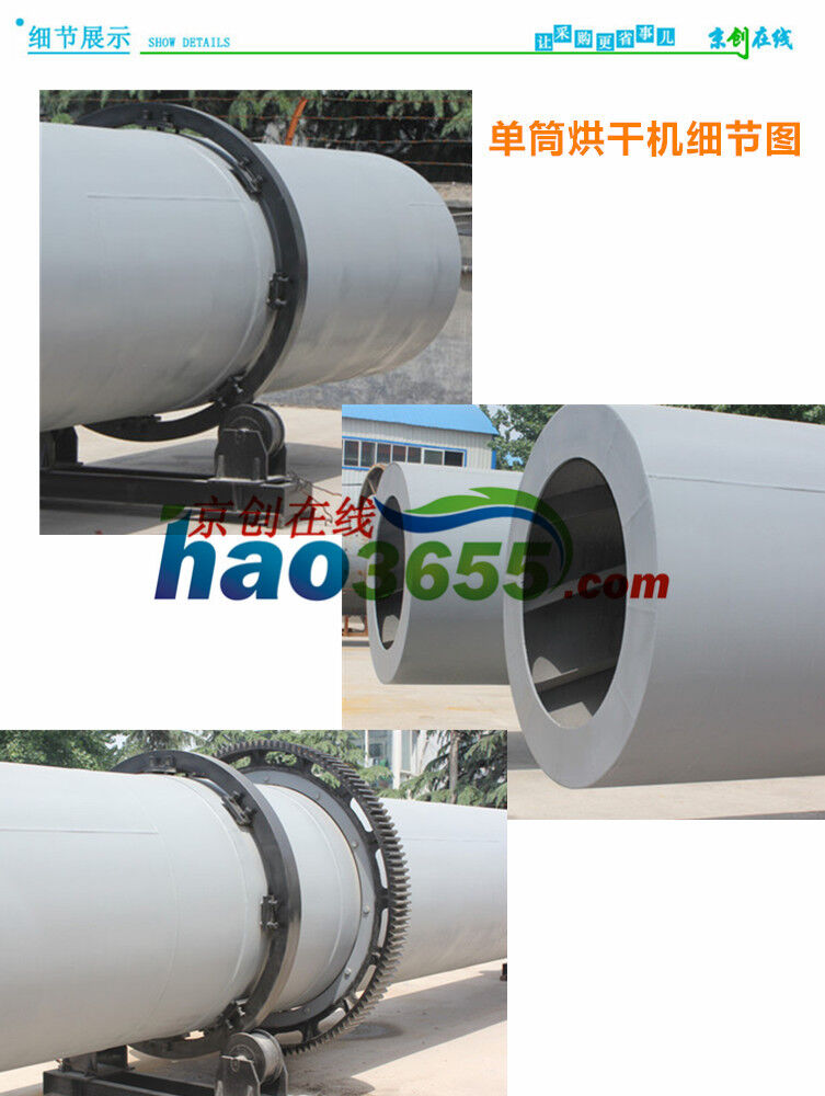 單筒烘干機(jī)φ3×25筒體是一個(gè)與水平線略成傾斜的旋轉(zhuǎn)圓筒,物料從較高一端加入,載熱體由低端進(jìn)去,與物料成逆流接觸,也有載熱體和物料一起并流入筒體的,隨著筒體的轉(zhuǎn)動(dòng),物料受重力作用運(yùn)行到較低的一端。